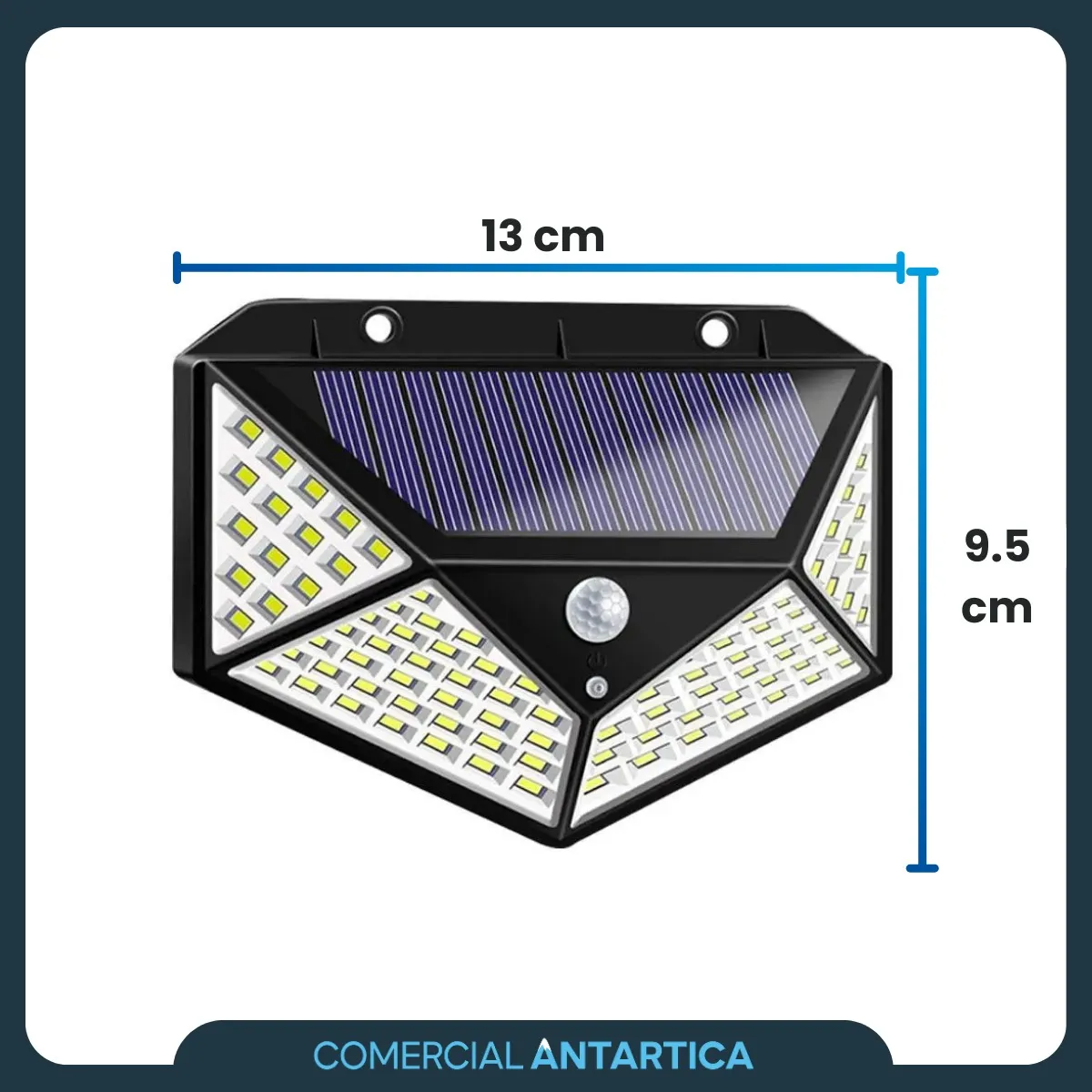 Reflector LED solar con sensor de movimiento, ideal para iluminación exterior eficiente. Funciona con energía solar, lo que lo hace ahorro energético y práctico para iluminar entradas, jardines, terrazas o pasillos sin necesidad de cables.
